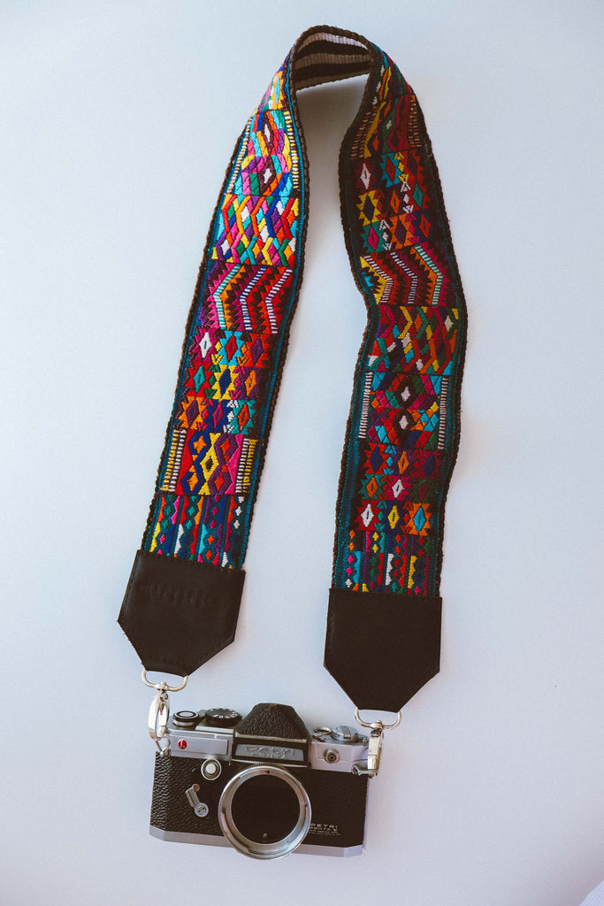 This embroidered strap features a vintage faja that was previously worn and loved by an indigenous woman in Guatemala. The style was originally designed to be a camera strap but also serves perfectly as a detachable bag strap. Each textile is sustainably sourced from our trusted market vendors and thoughtfully upcycled. The leather attachments and clips are carefully crafted by our longtime artisan partner in the Vicente Family Workshop in Panajachel. Shop proudly knowing your purchase supports a fair and honest wage for creative entrepreneurs in the western highlands of Guatemala.