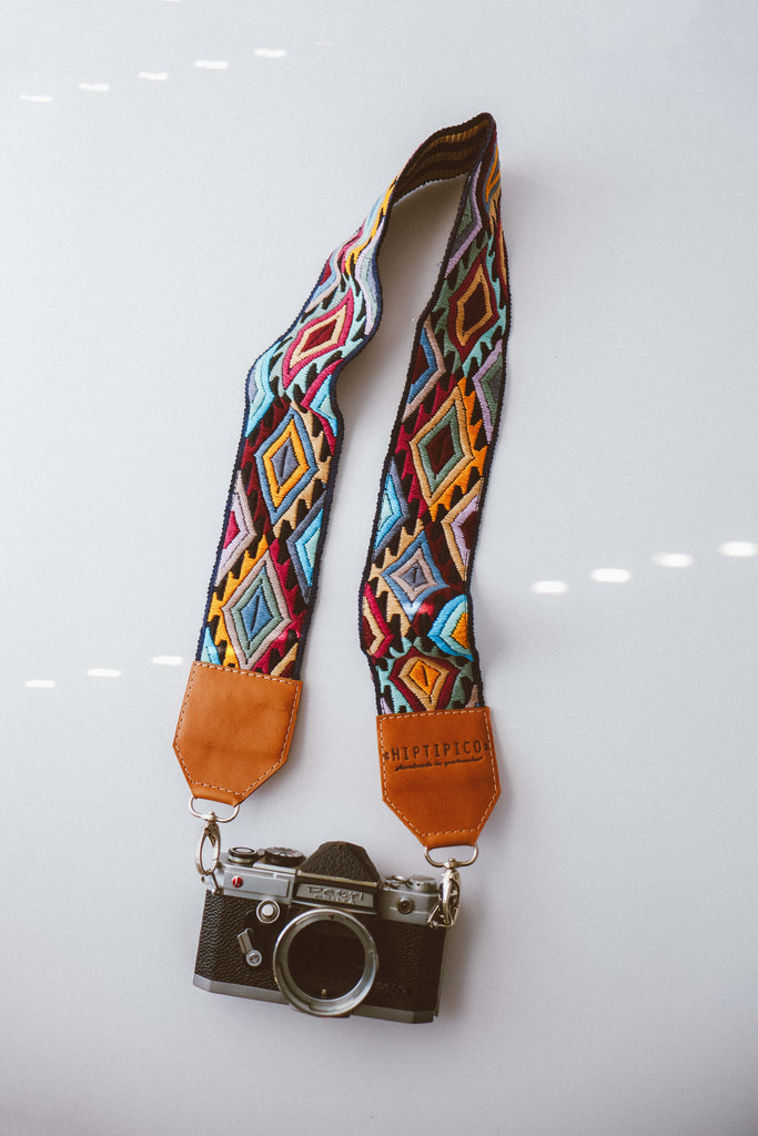This embroidered strap features a newly made textile handmade by an all-women weaving cooperative in Guatemala. The style was originally designed to be a camera strap but also serves perfectly as a detachable bag strap. The leather attachments and clips are carefully crafted by our longtime artisan partner in the Vicente Family Workshop in Panajachel. Shop proudly knowing your purchase supports a fair and honest wage for creative entrepreneurs in the western highlands of Guatemala.